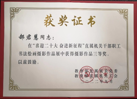 公司職工在“喜迎二十大 奮進(jìn)新征程”直屬機關(guān)干部職工書(shū)法繪畫(huà)攝影作品展活動(dòng)中獲得獎項