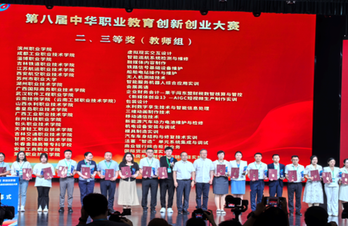 在教師賽道頒獎儀式中,徐晴為第八屆中華職業(yè)教育創(chuàng )新創(chuàng )業(yè)大賽教師賽道獲獎院校頒發(fā)證書(shū)。